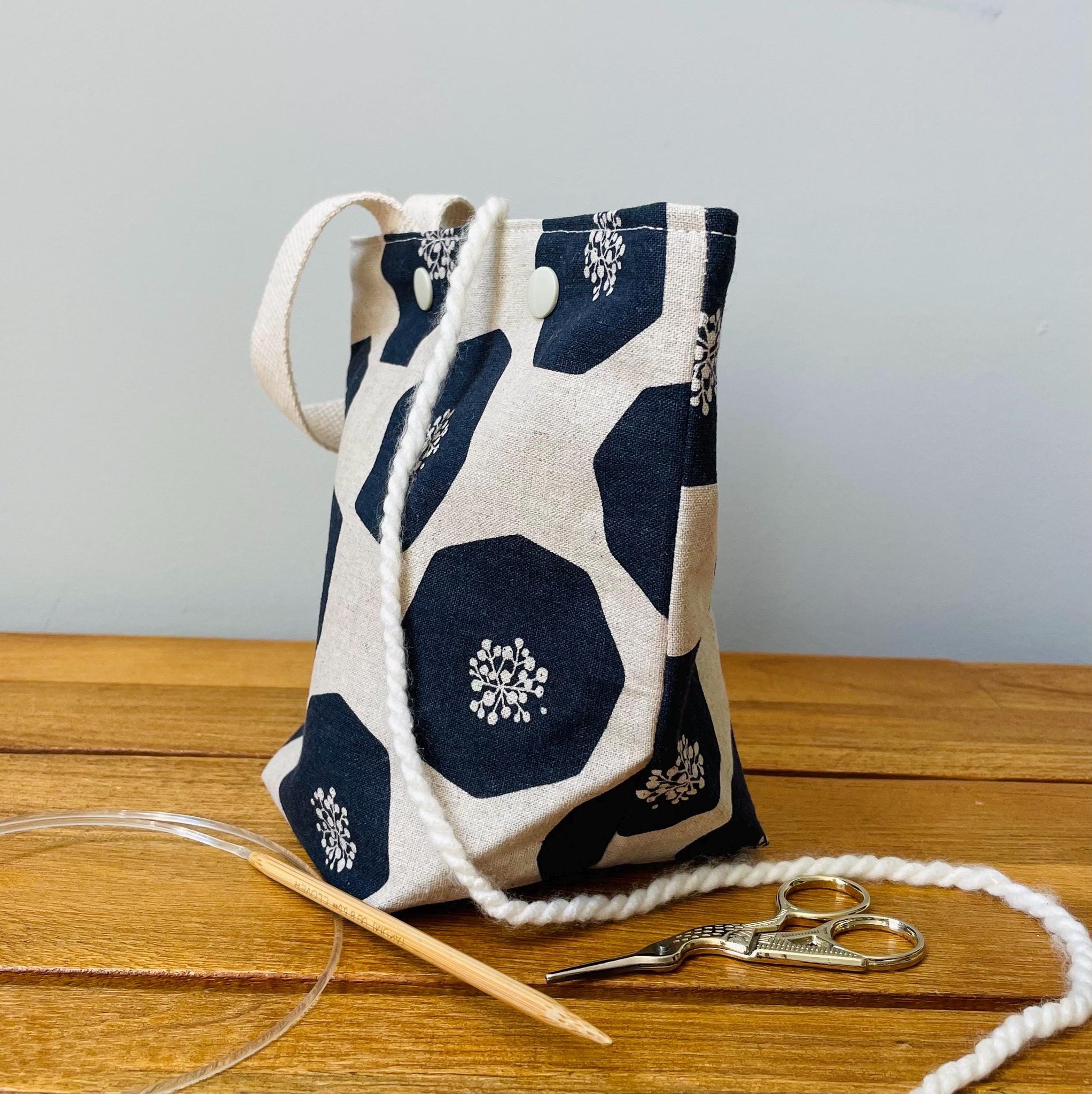 Looking for a perfect gift for the crafters in your life? Or maybe a little something for yourself? Ever watched helplessly as a "runaway" ball of yarn makes a quick getaway across the room, only for a cat or toddler to "help" and create a tangled mess? This handy and beautiful yarn bag will keep your ball of yarn safe and tangle-free. Designed to hold one large ball of yarn, it can also accommodate small projects such as socks.