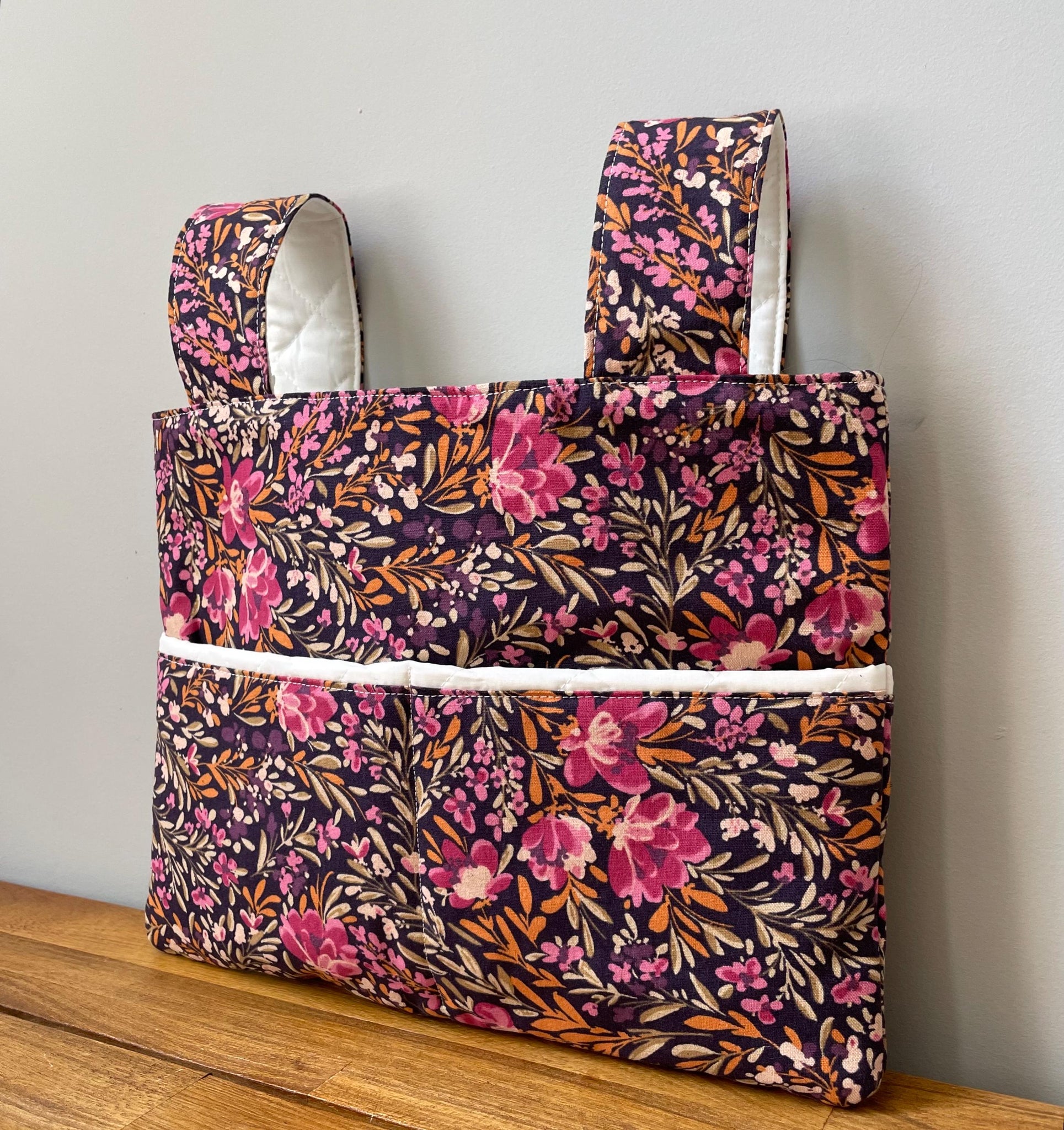 Got gear? At Grannys on The Go we believe that everyone is entitled to celebrate their style, be it young or old. Balancing a purse while using a walker can be more than a challenge, but who wants a boring, run of the mill, hum drum...(you get the picture) walker bag? You've got style! Why not show it by using a stylish, yet functional (occupational therapist designed and approved!!) "Grannys on The Go" walker bag? This bag is created using a RJR purple and pink butterfly home décor weight fabric, structured with a soft flexible interfacing and lined with coordinating cream quilted cotton fabric.